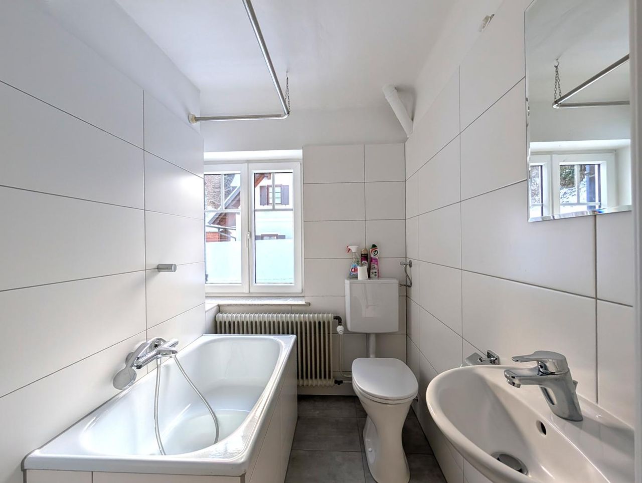 - Badezimmer mit Badewanne und Fenster