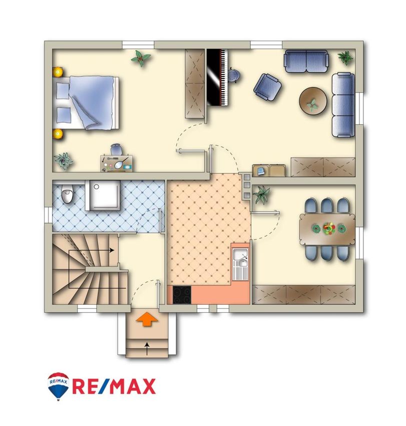 Das Erdgeschoss teilt sich wie folgt auf: