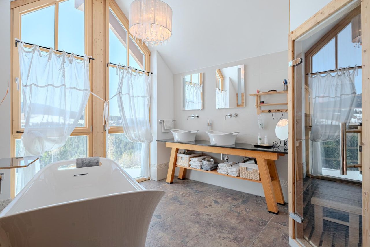 Im Obergeschoss befinden sich mehrere Schlafzimmer sowie ein großzügiges Badezimmer. Besonders praktisch sind die zwei zusätzlichen Dusch-WCs, die den Wohnkomfort im Alltag deutlich erhöhen.
