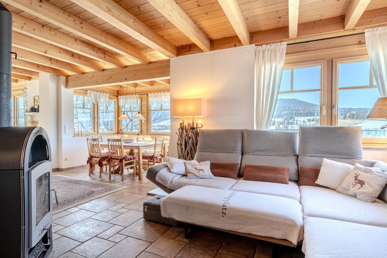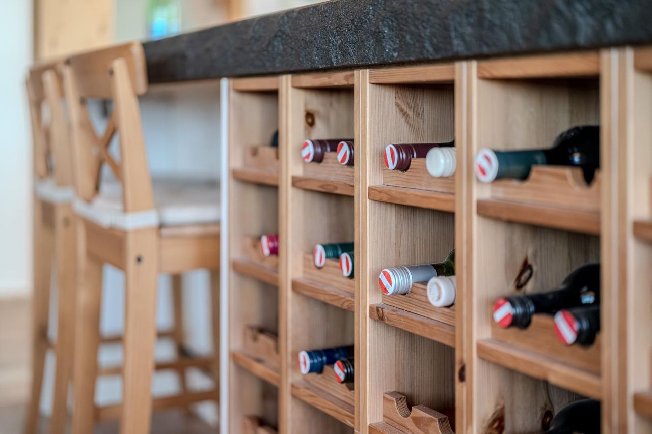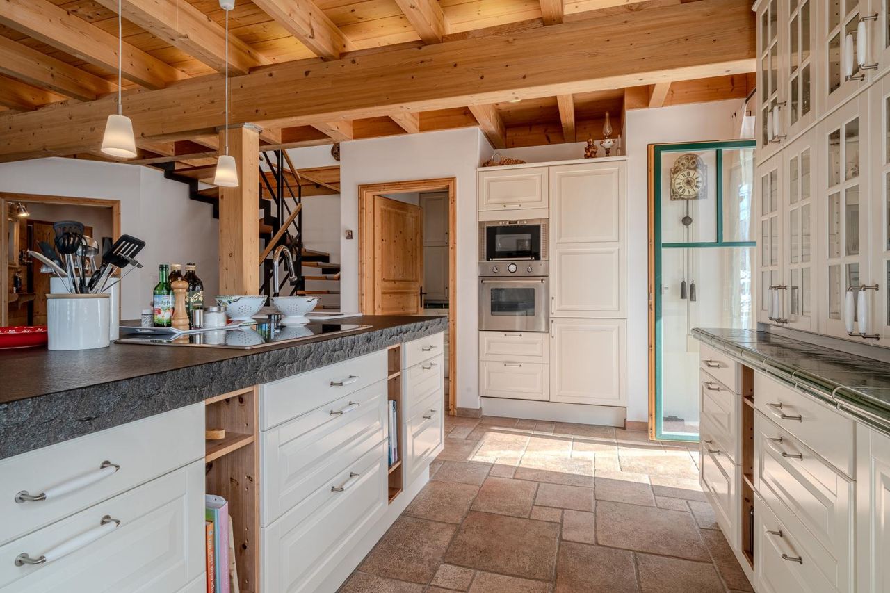 Der offene Wohn- und Essbereich bildet das Herzstück des Hauses. Eine Küche mit Kochinsel und massiver Natursteinarbeitsplatte schafft eine stilvolle Atmosphäre und lädt zum gemeinsamen Kochen und Verweilen ein. Für zusätzliche Behaglichkeit sorgt ein Kaminofen mit Wärmetauscher, der Wärme in das Heizsystem einspeist.