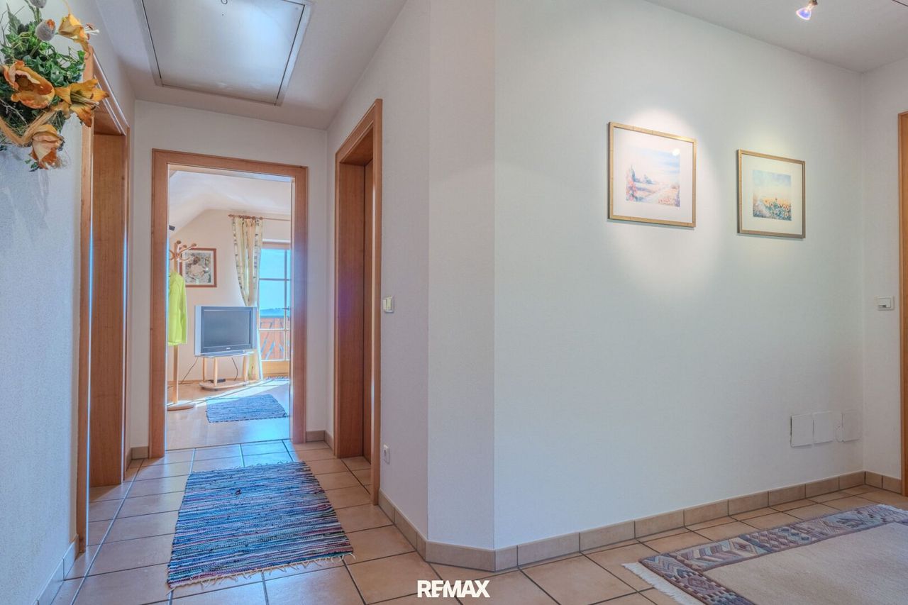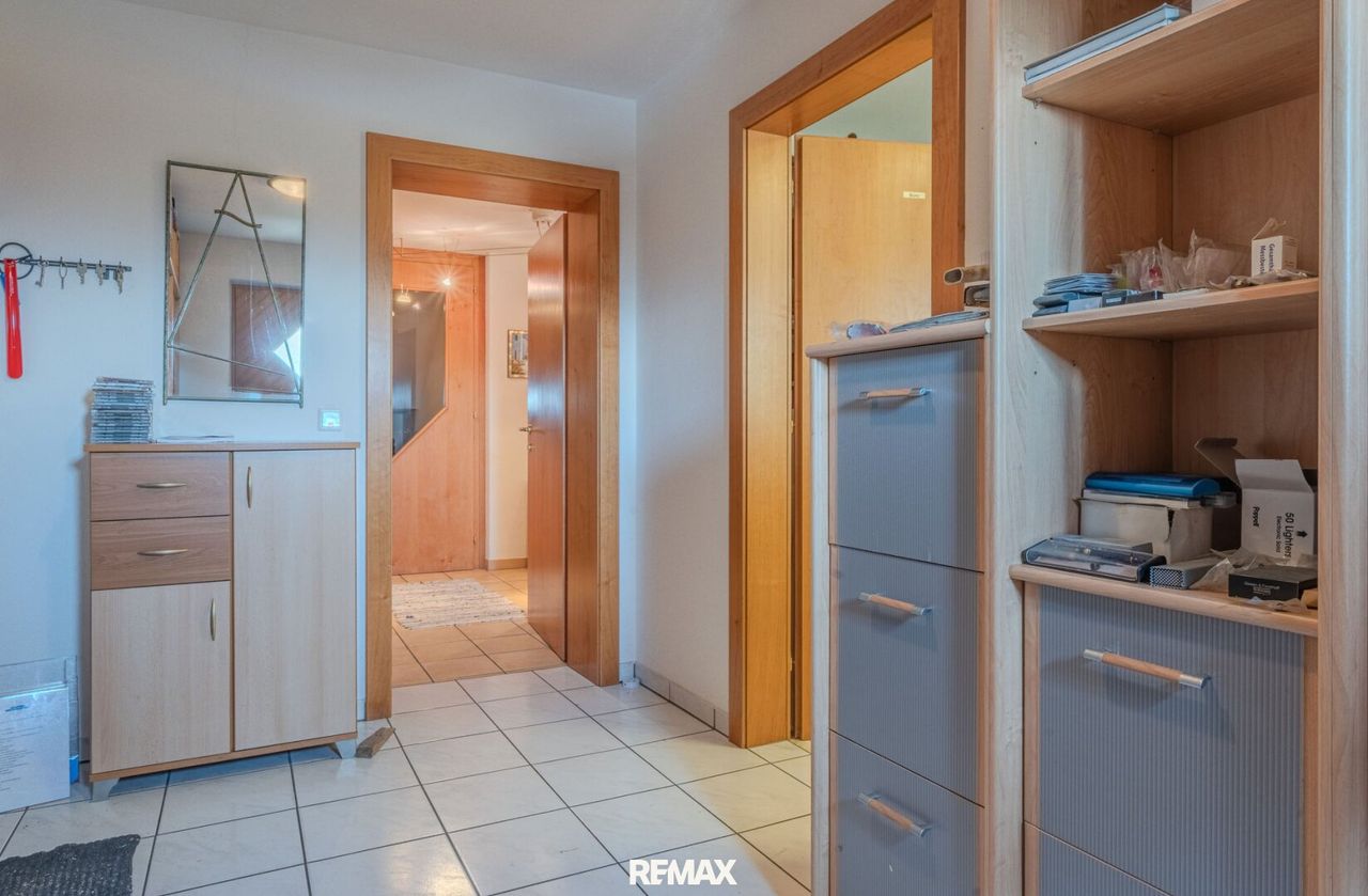 Das Haus überzeugt mit einer durchdachten Raumaufteilung und vielseitig nutzbaren Flächen. Eine Terrasse, zwei Balkone sowie eine Dachterrasse schaffen mehrere attraktive Außenbereiche, die zum Entspannen und Genießen einladen. Besonders hervorzuheben sind die Ost-Ausrichtung sowie die schöne Fernsicht, die der Immobilie einen besonderen Wohnwert verleihen. Die Garage rundet das Angebot praktisch ab.