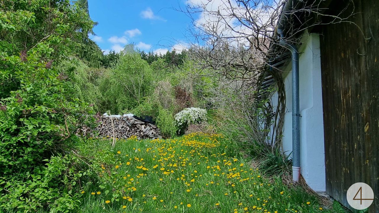 Hinter dem Haus ist ein uneinsehbarer, romantischer Garten, welcher mit der "Natur im Garten" Plakette ausgezeichnet wurde, der mit schönen, hohen Bäumen eingegrenzt ist und etliche Obstbäume wollen beerntet werden.