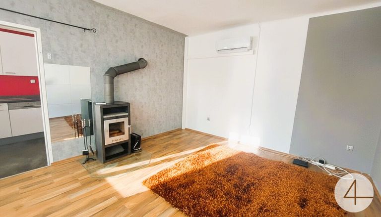 Im Obergeschoß findet das Wohnen statt. Helle Küche mit Essgelegenheit, großer Wohnraum mit Schwedenofen - dieser sorgt für wohlige Wärme und gemütliche Stunden.