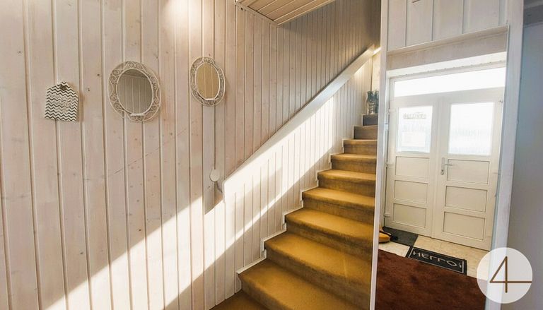Betreten Sie Ihr neues Zuhause über den hellen Eingangsbereich im Erdgeschoss, der genug Raum für Abstellmöglichkeiten bietet.