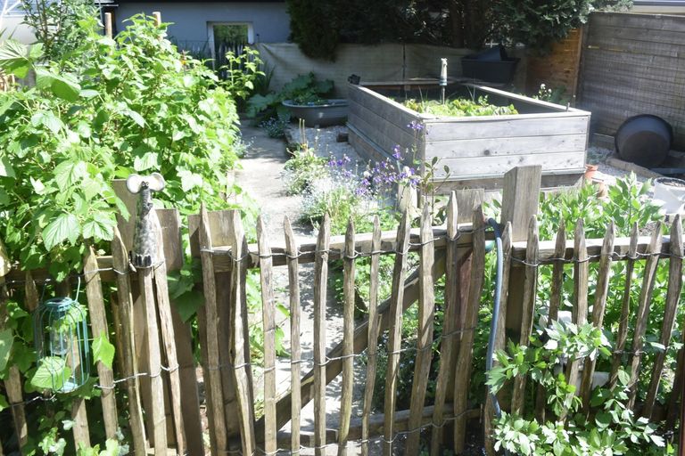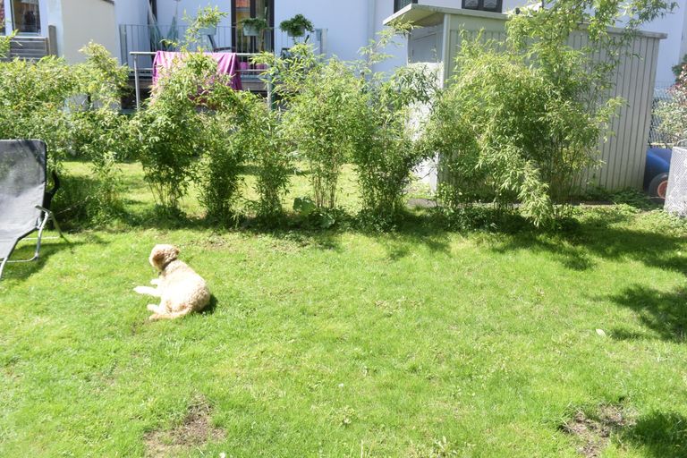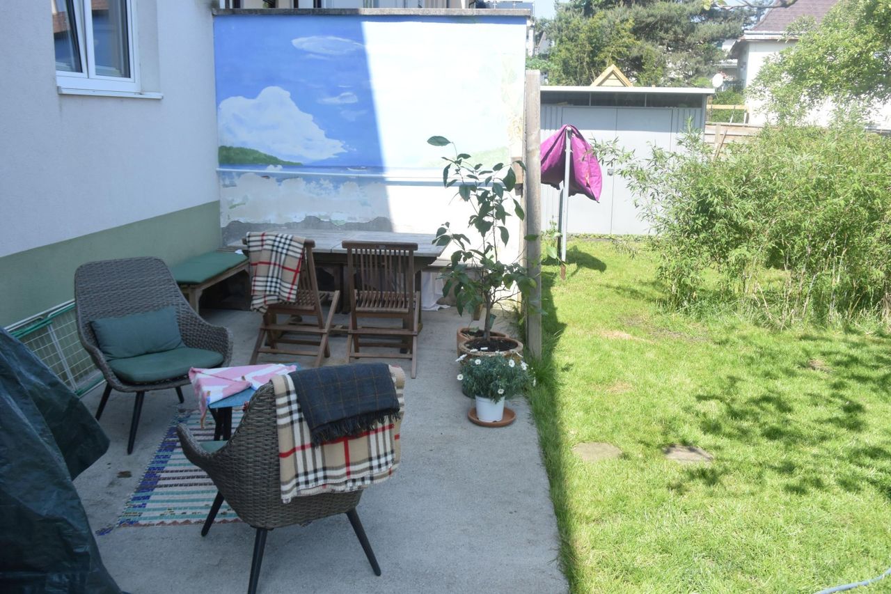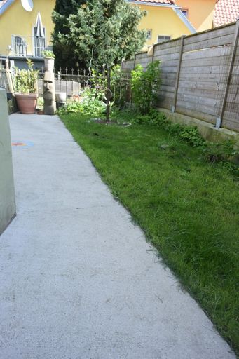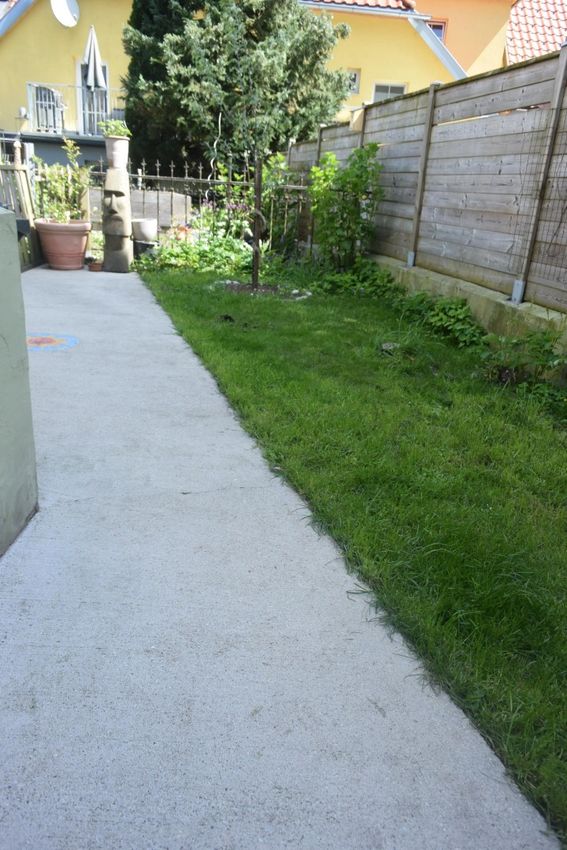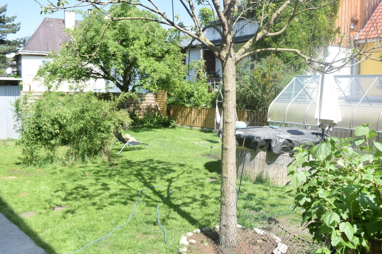 Am Grundstück findet man neben dem PKW-Stellplatz auch einen schön bepflanzten Gartenbereich (alter Apfelbaum, Trompetenbaum, Weinrebe, Marillenbäumchen) mit einer Gartenhütte aus Aluminium, ein Holzbadefass, ein Glashaus und ein Hochbeet. Als Sichtschutz zum Nachbarn fungieren kesseldruckimprägnierte Holzwände sowie Elefantengras und Bambus.