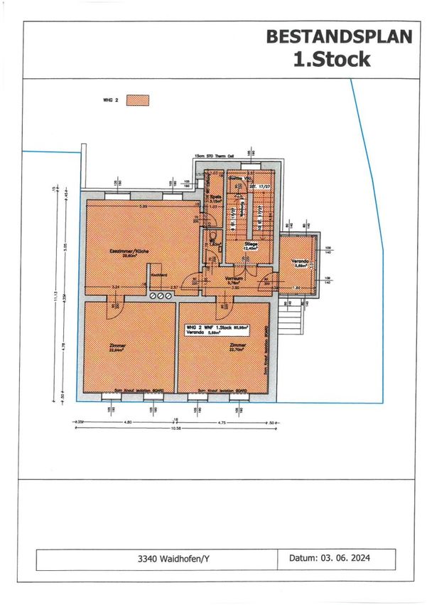 Vorraum, Küche, 3 Zimmer, Bad, WC, Veranda. (derzeit nicht bestandsfrei)