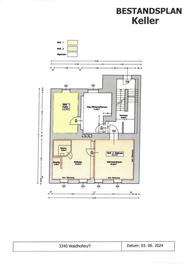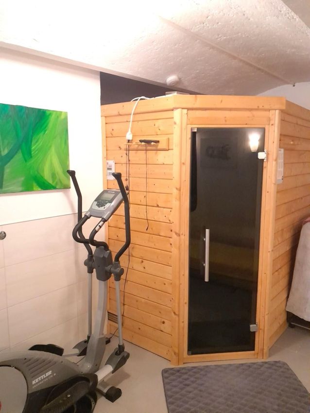 Keller: Wellness-Sauna-Duschbereich, Abstellraum, Heizung/Wirtschaftsraum.