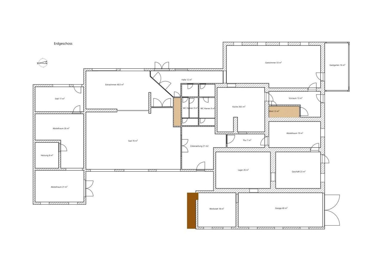 Gasthof, Seminarhaus, Beherbergung, Werkstätten oder Praxisräume mit Wohnanteil. Gastronomischer Betrieb sofort möglich.