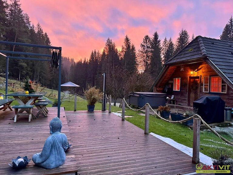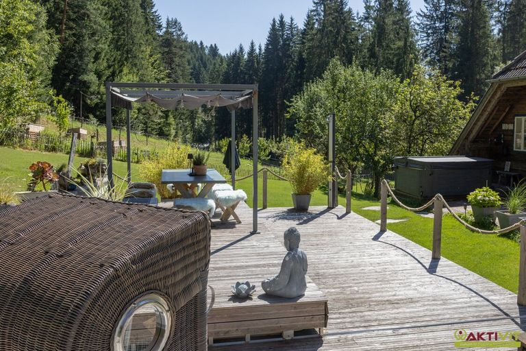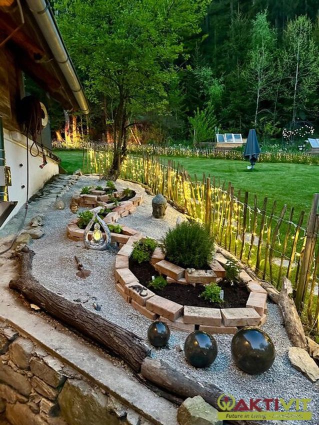 - Grundstücksfläche ca. 14.767 m² mit Wildbach, Hochbeeten und Obstbäumen