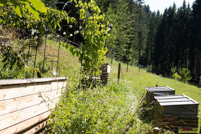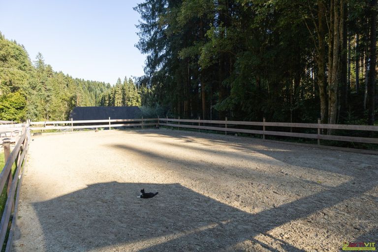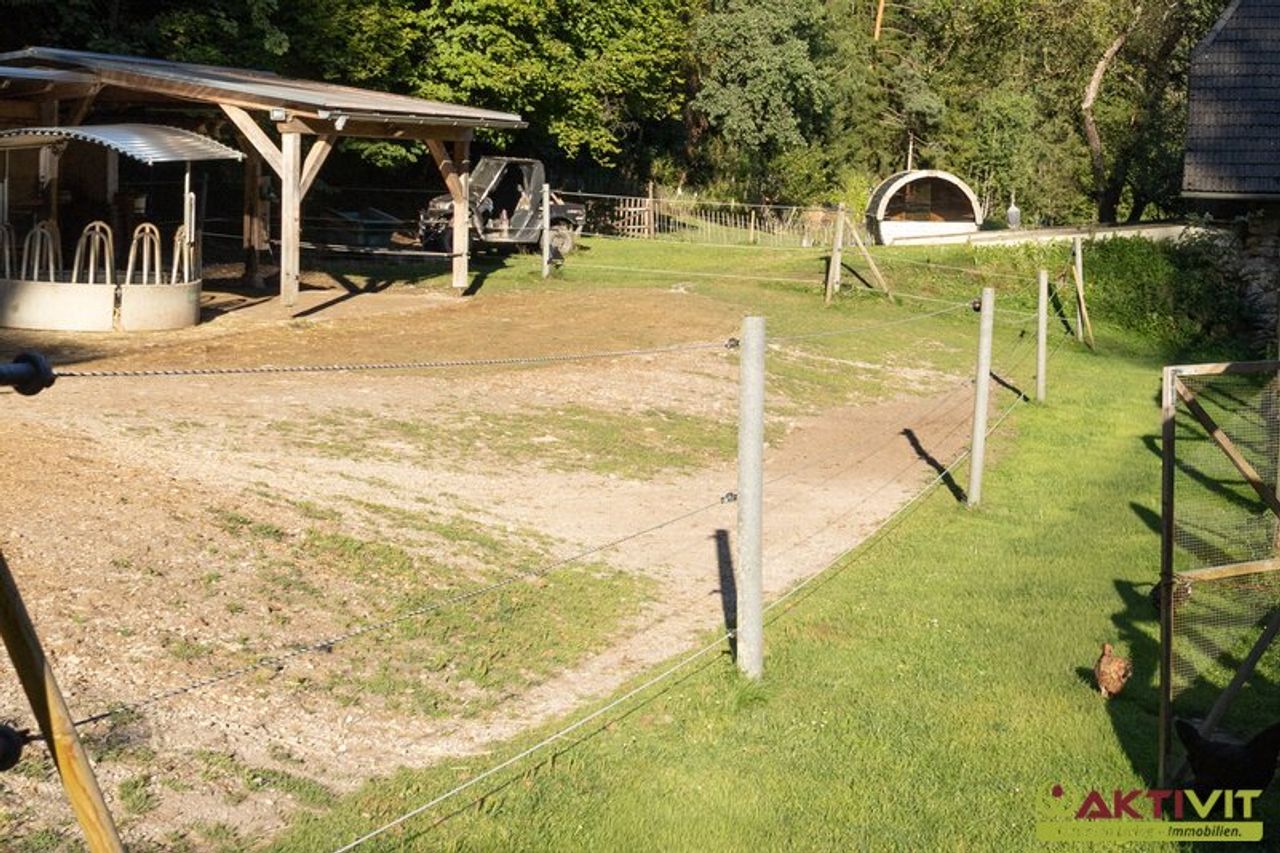 Das Grundstück bietet vielfältige Nutzungsmöglichkeiten: Pferdekoppeln, Obstbäume, Hochbeete, Wildbach und eine eigene Quelle schaffen ein seltenes Naturidyll. Der Reitplatz sowie der große Scheunentrakt ergänzen das Ensemble perfekt.