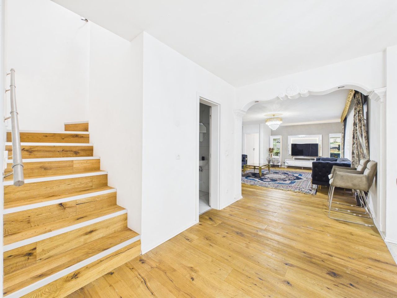 Schon beim Betreten des Hauses spürt man die Großzügigkeit dieser Immobilie. Helle Räume, große Fensterflächen und eine offene Gestaltung schaffen ein modernes und gleichzeitig sehr wohnliches Ambiente.