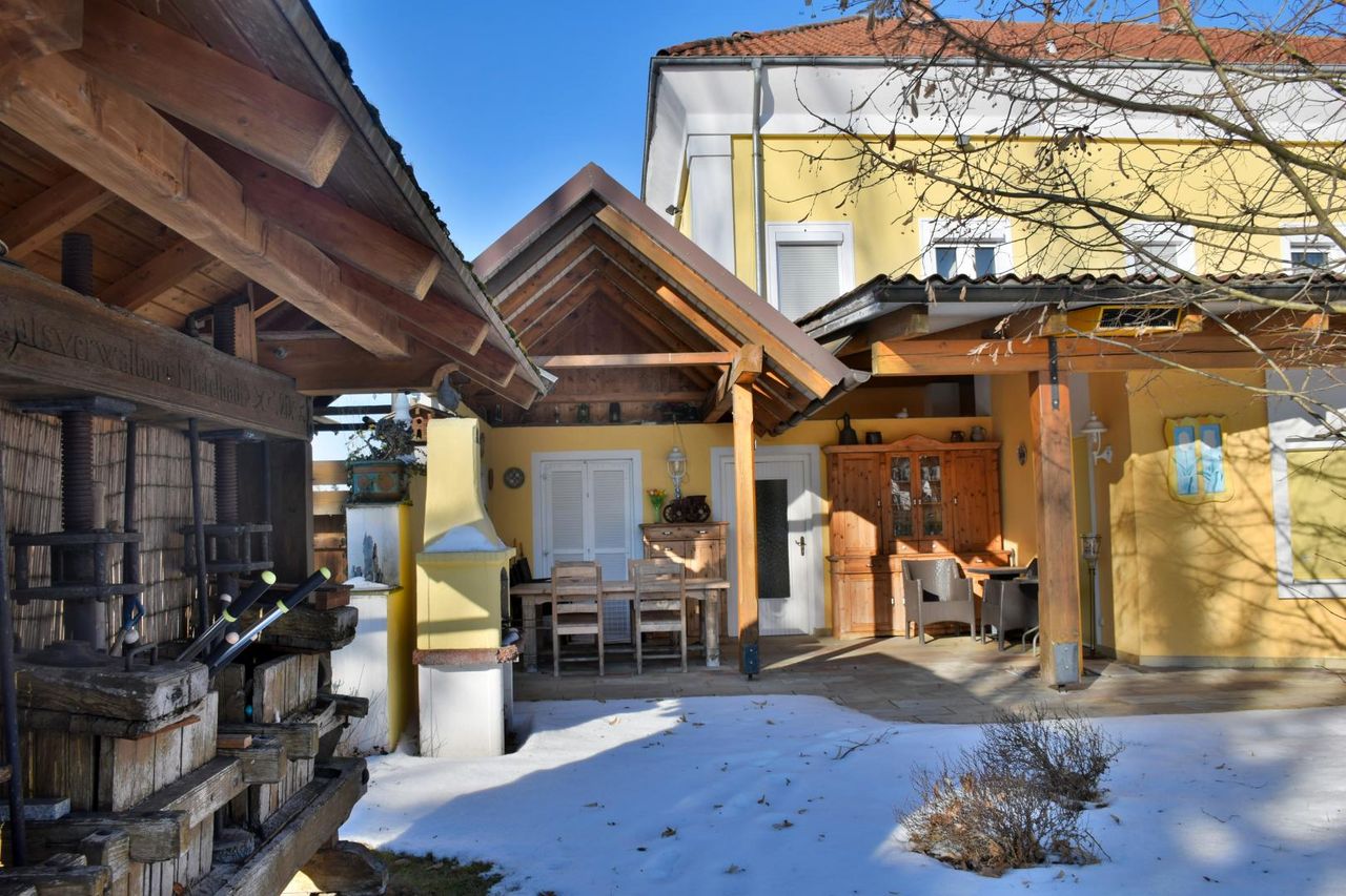 Als Highlight dieser Immobilie gilt der in Massivbauweise errichtete, am Objekt angebaute, südliche Wintergarten mit einer Fläche von rund 80m². Hier befindet sich ein Swimmingpool mit einer Wasseroberfläche von rund 30m² mit einer Römertreppe.