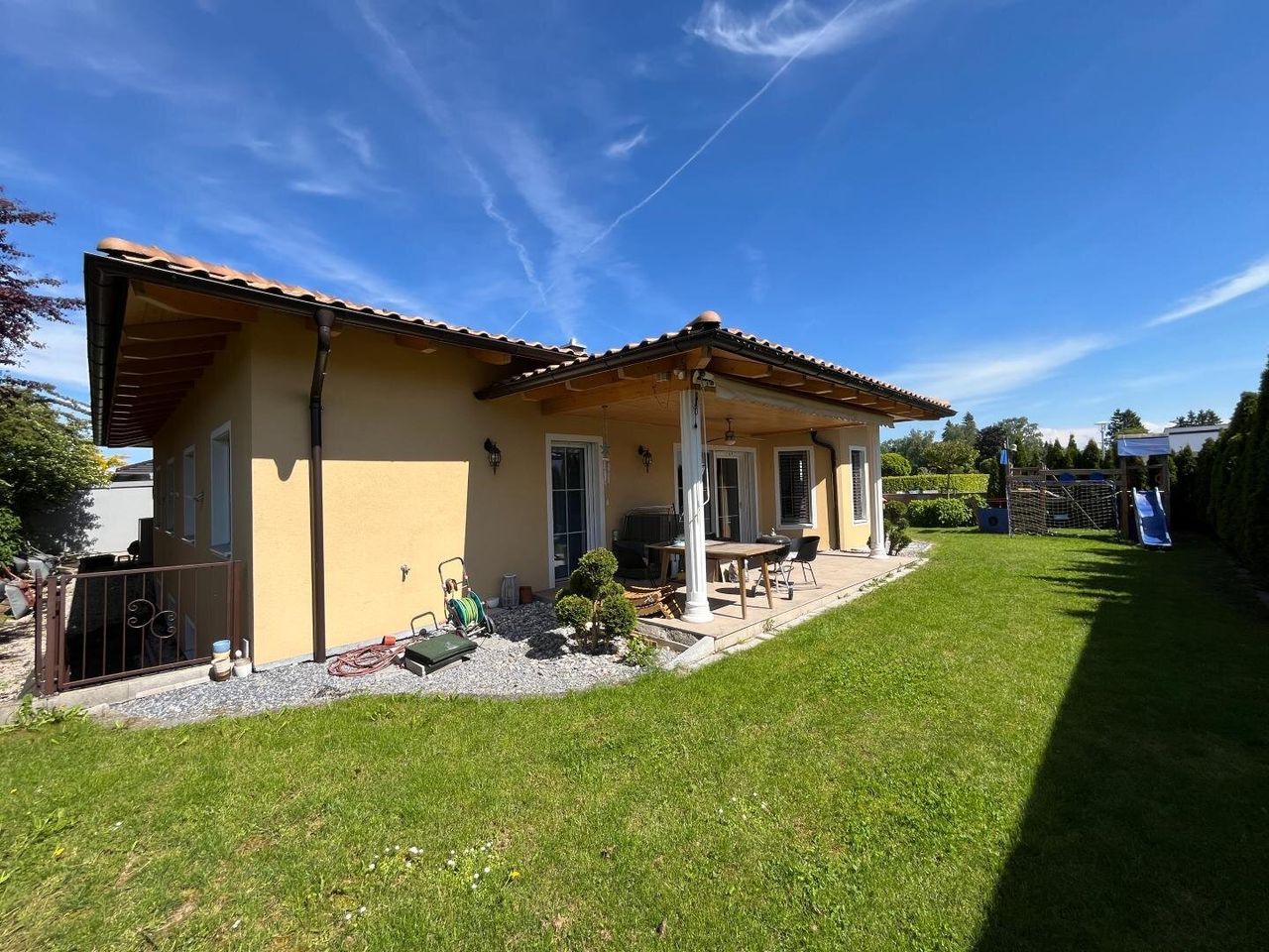NEUER PREIS! Exklusiver Bungalow im Toskana Stil mit Terrasse, Traumgarten und Doppelgarage in Marchtrenk