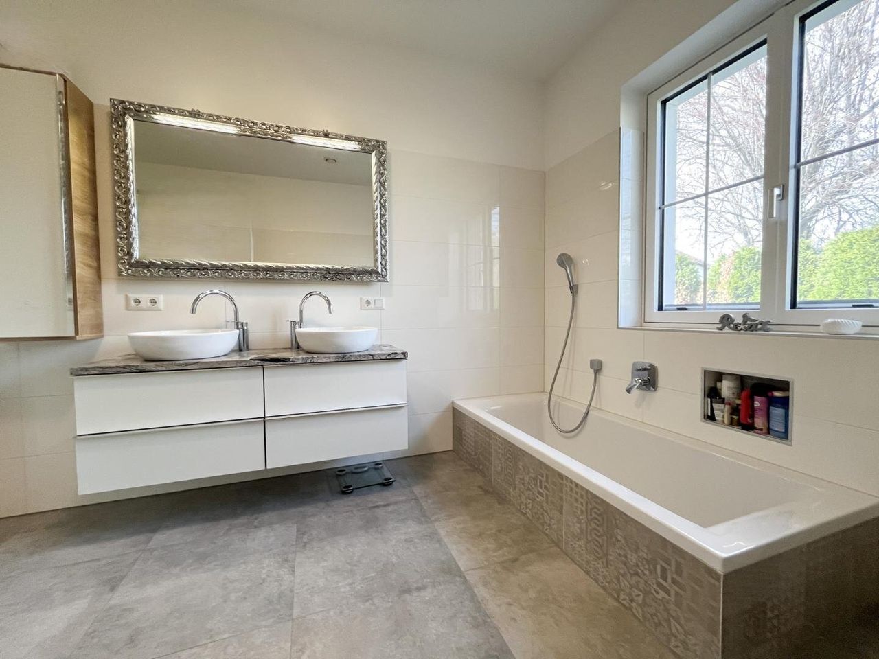 • stilvolles Badezimmer mit Dusche und Badewanne im EG barrierefrei