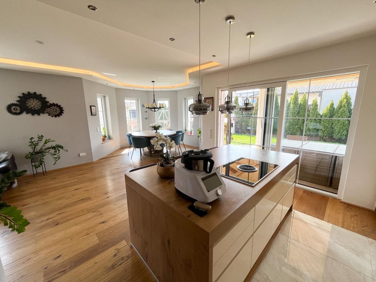 • hochwertige Küche mit Miele Geräte und Bora Kochfeld mit Dunstabzug