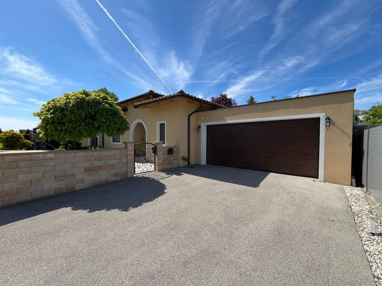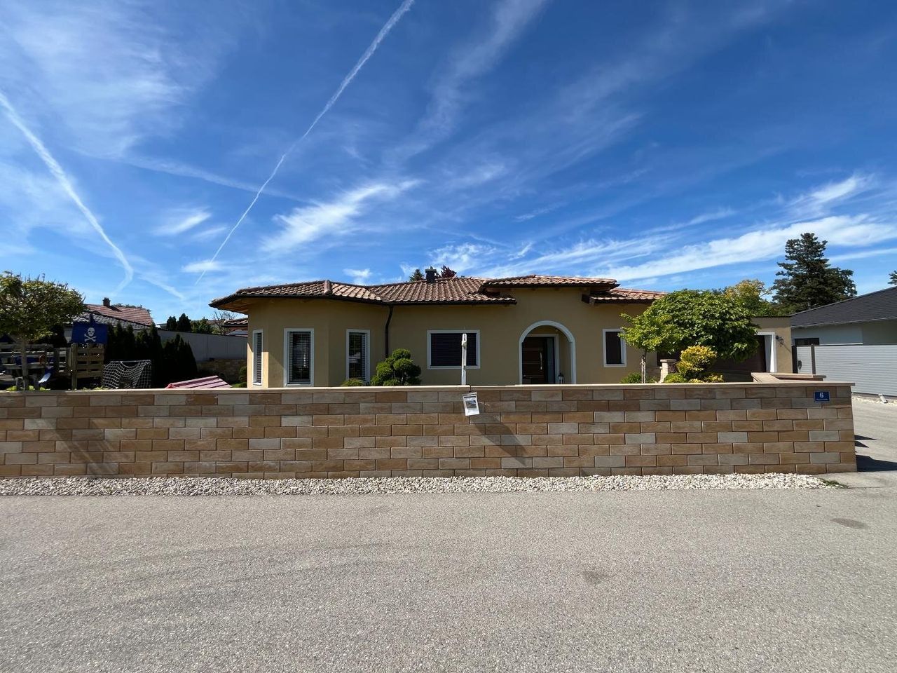 Dieser traumhafte Bungalow vereint mediterranes Flair mit moderner Wohnqualität, ein Neubau aus dem Jahr 2017. Das großzügige Raumkonzept und die hochwertigen Materialien schaffen eine einladende Atmosphäre, die höchsten Wohnansprüchen gerecht wird.