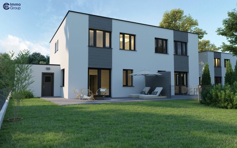 Auf zwei Wohnebenen bieten die Einheiten Wohnflächen zwischen ca. 113 und 114 m², ergänzt durch private Gärten und einladende Terrassen.