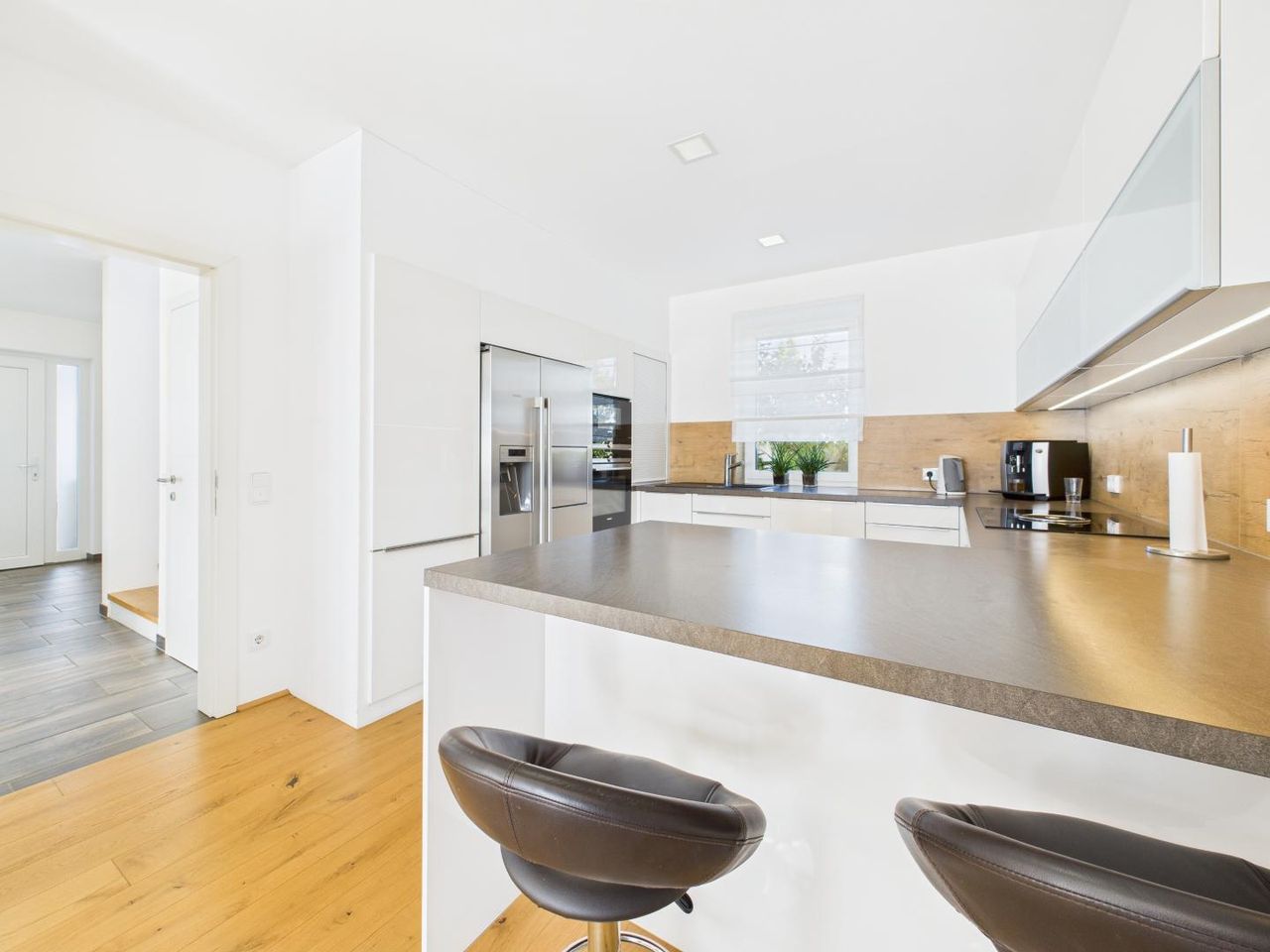 Das im Jahr 2016 in Massivbauweise errichtete Haus bietet ca. 129,83 m² Wohnfläche auf zwei Ebenen – offen, hell und luxuriös gestaltet. Großzügige Fensterflächen durchfluten die Räume mit Licht und schaffen gemeinsam mit edlen Materialien und klaren Linien eine Atmosphäre von Eleganz und Wärme.
