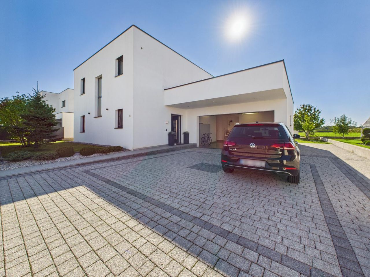 Zusätzliche Highlights wie die Doppelgarage, die großzügige Einfahrt mit mehreren Stellplätzen und die ruhige Nachbarschaft unterstreichen den durchdachten und exklusiven Charakter dieses Hauses.