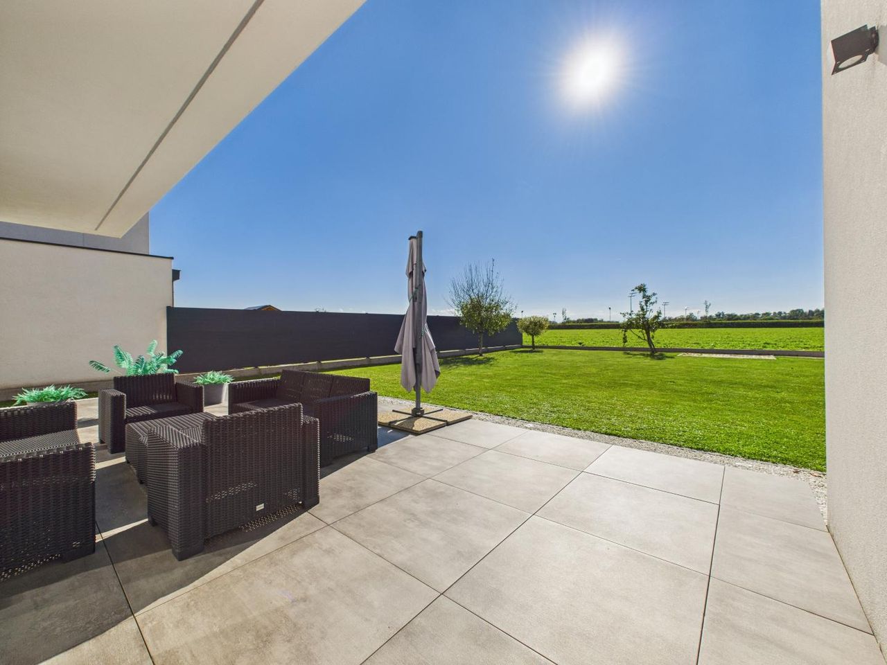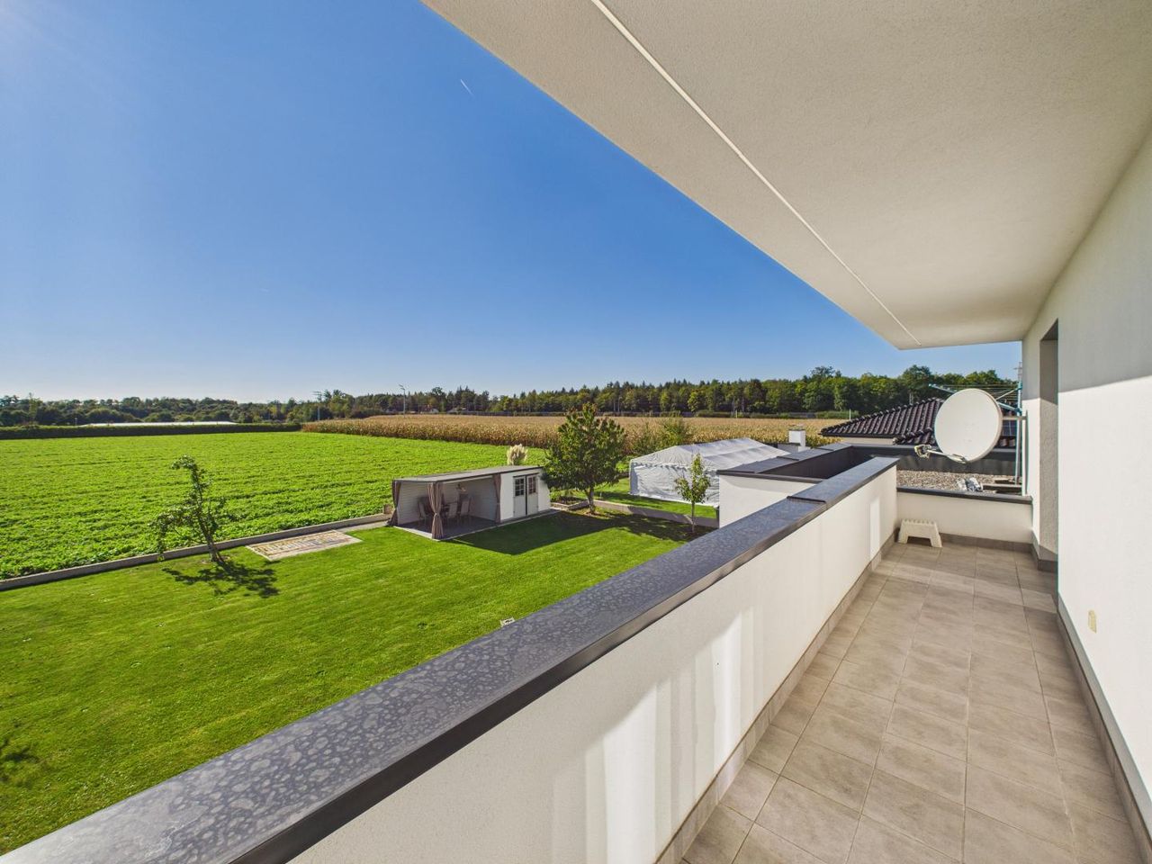 Perfekt ausgerichtet nach Südwesten, mit freiem Blick ins Grüne, direktem Feldanschluss & maximaler Privatsphäre – pure Ruhe & Sonne bis zum Abend