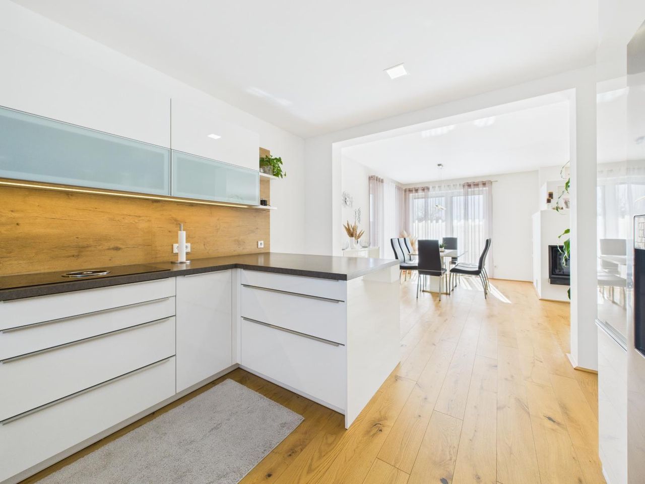 Edle Materialien, hochwertiger Kamin, moderne Tischlerküche & stilvolle Bäder – bereits im Kaufpreis enthalten