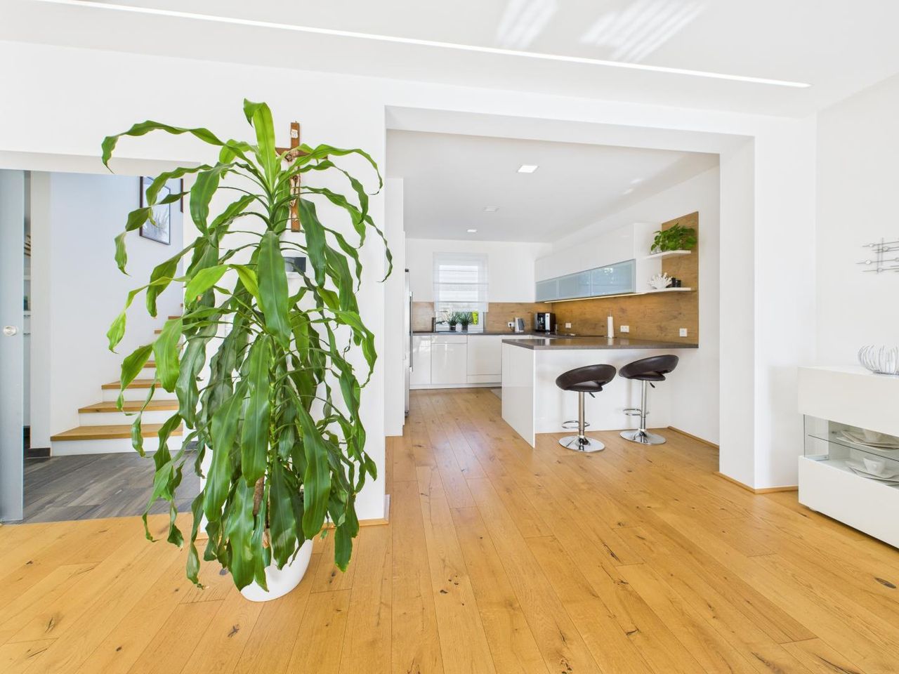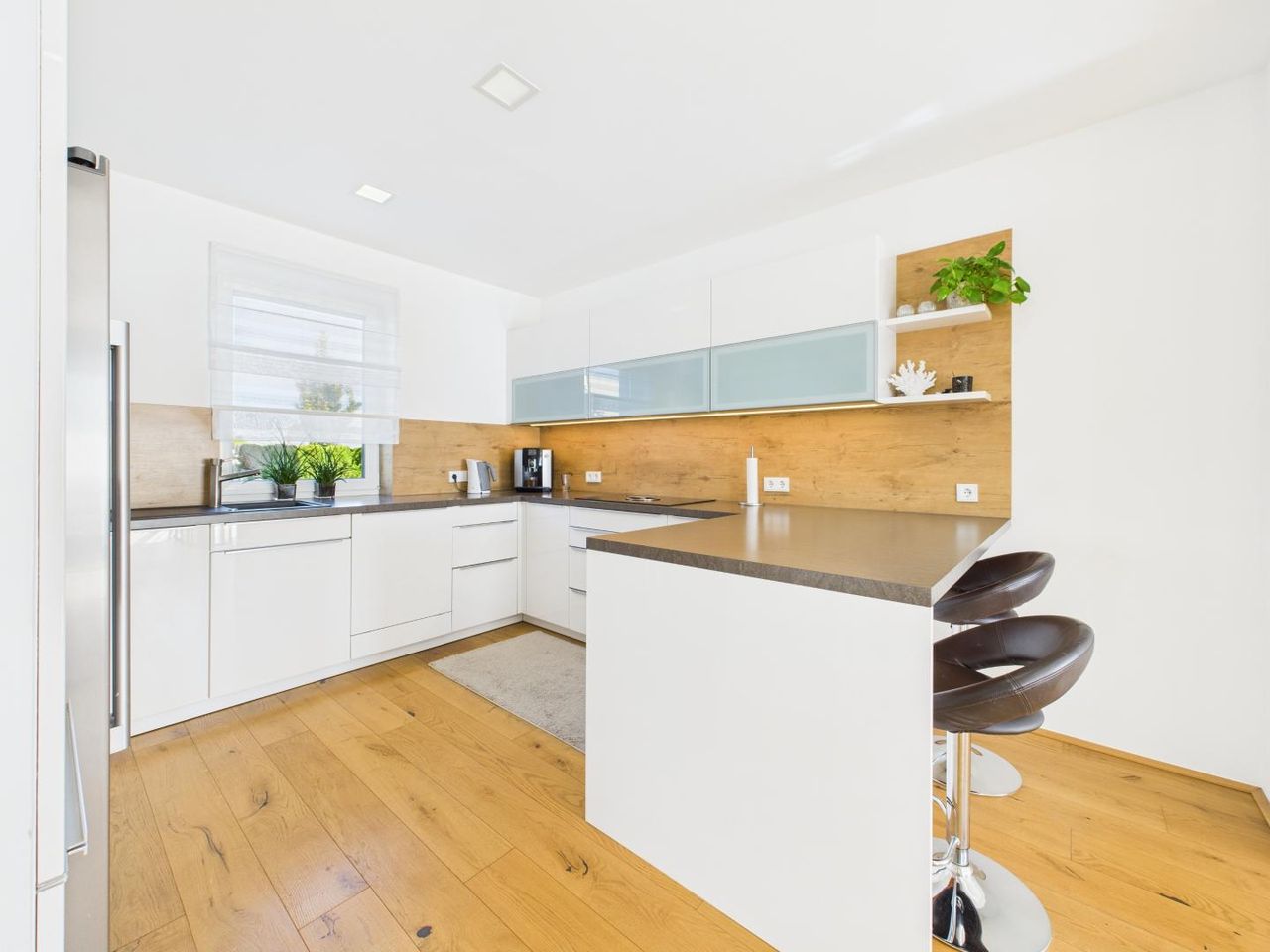 Das im Jahr 2016 in Massivbauweise errichtete Haus bietet ca. 129,83 m² Wohnfläche auf zwei Ebenen – offen, hell und luxuriös gestaltet. Großzügige Fensterflächen durchfluten die Räume mit Licht und schaffen gemeinsam mit edlen Materialien und klaren Linien eine Atmosphäre von Eleganz und Wärme.