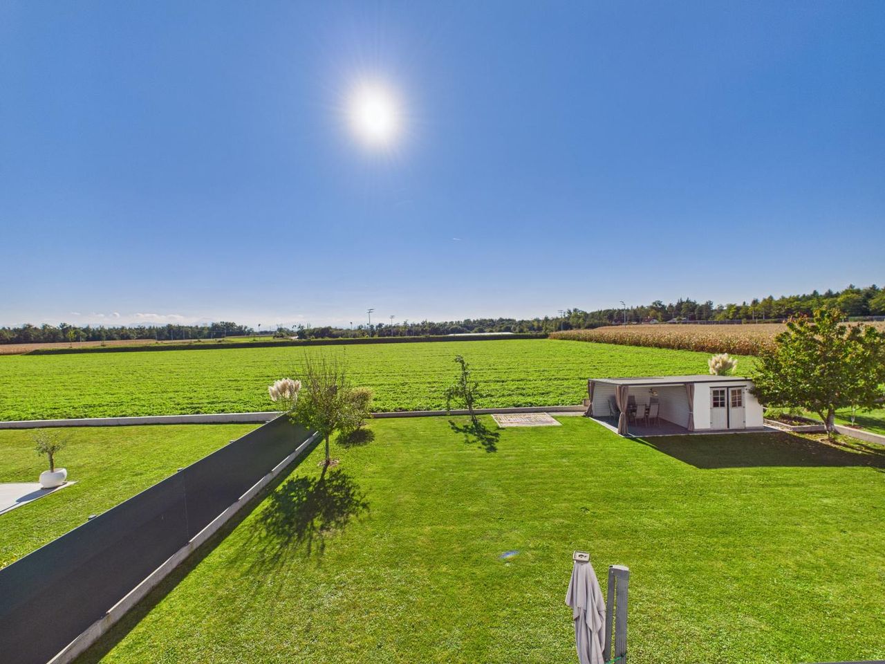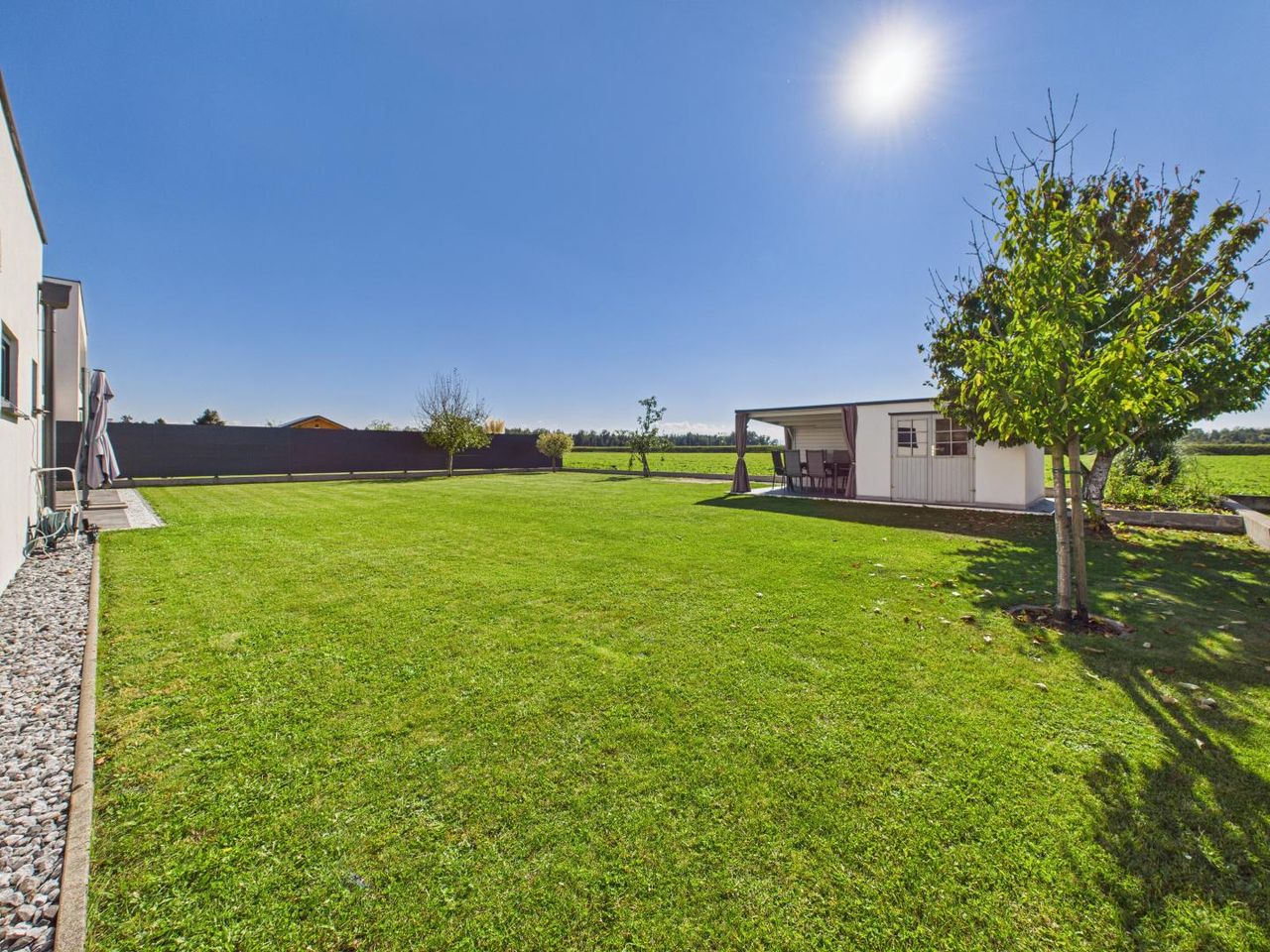 Perfekt ausgerichtet nach Südwesten, mit freiem Blick ins Grüne, direktem Feldanschluss & maximaler Privatsphäre – pure Ruhe & Sonne bis zum Abend