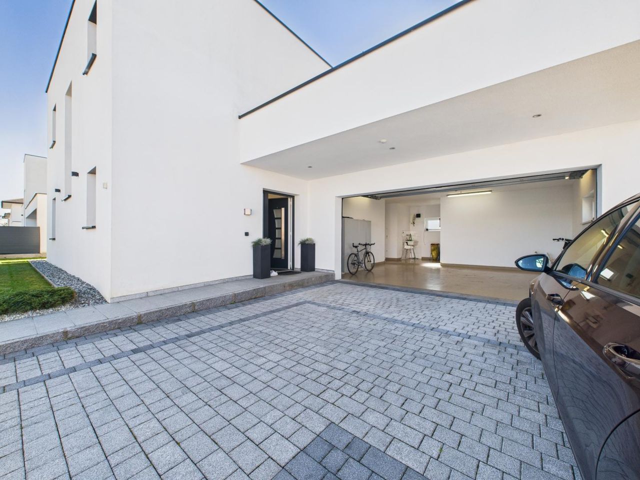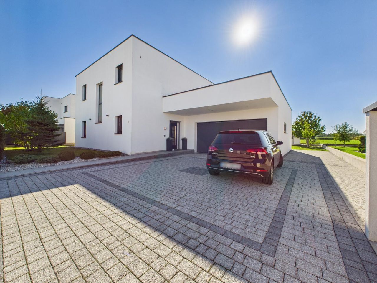 Zusätzliche Highlights wie die Doppelgarage, die großzügige Einfahrt mit mehreren Stellplätzen und die ruhige Nachbarschaft unterstreichen den durchdachten und exklusiven Charakter dieses Hauses.