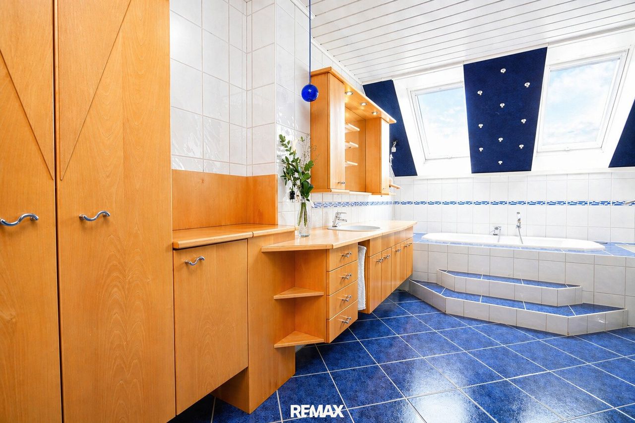- Großzügiges Badezimmer mit Badewanne, Dusche und Doppelwaschbecken