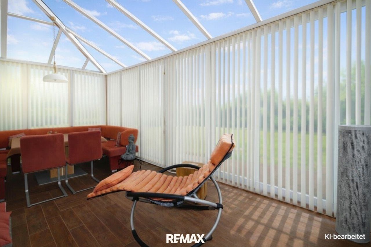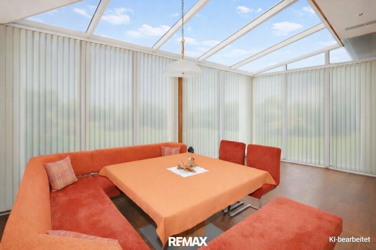 Der helle Wohnbereich bildet das Herzstück des Hauses und geht fließend in den großzügigen Wintergarten über – ideal für entspannte Stunden oder gesellige Abende. Die angrenzende Küche lädt zum Kochen und Genießen im gemütlichen Essbereich ein.