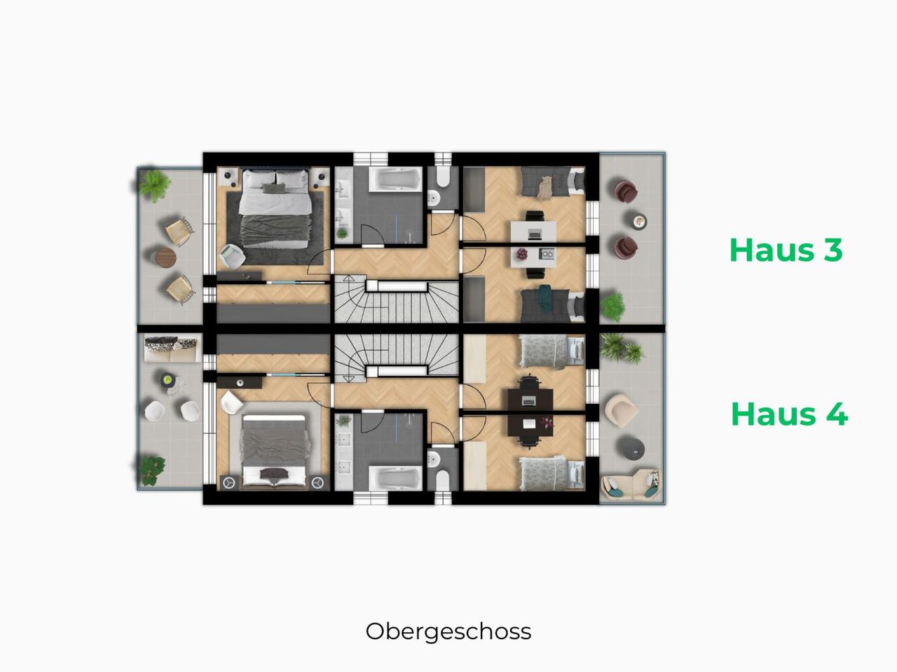 Hier entstehen vier außergewöhnlich großzügige Doppelhaushälften im Erstbezug, die modernes Design, neueste Technik und private Wohlfühloasen vereinen. Jede Einheit wird schlüsselfertig übergeben und ist ab Ende Juni bezugsbereit – einziehen und sofort auf höchstem Niveau wohnen.