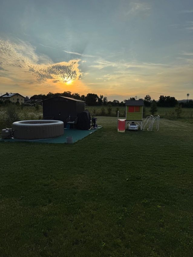 Es gibt nach hinten eine 20 m2 überdachte Terasse und einen schönen Garten.