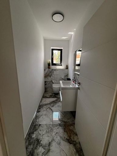 im EG gibt es ein großes Wohnzimmer, Gästezimmer,WC, Küche, Terasse