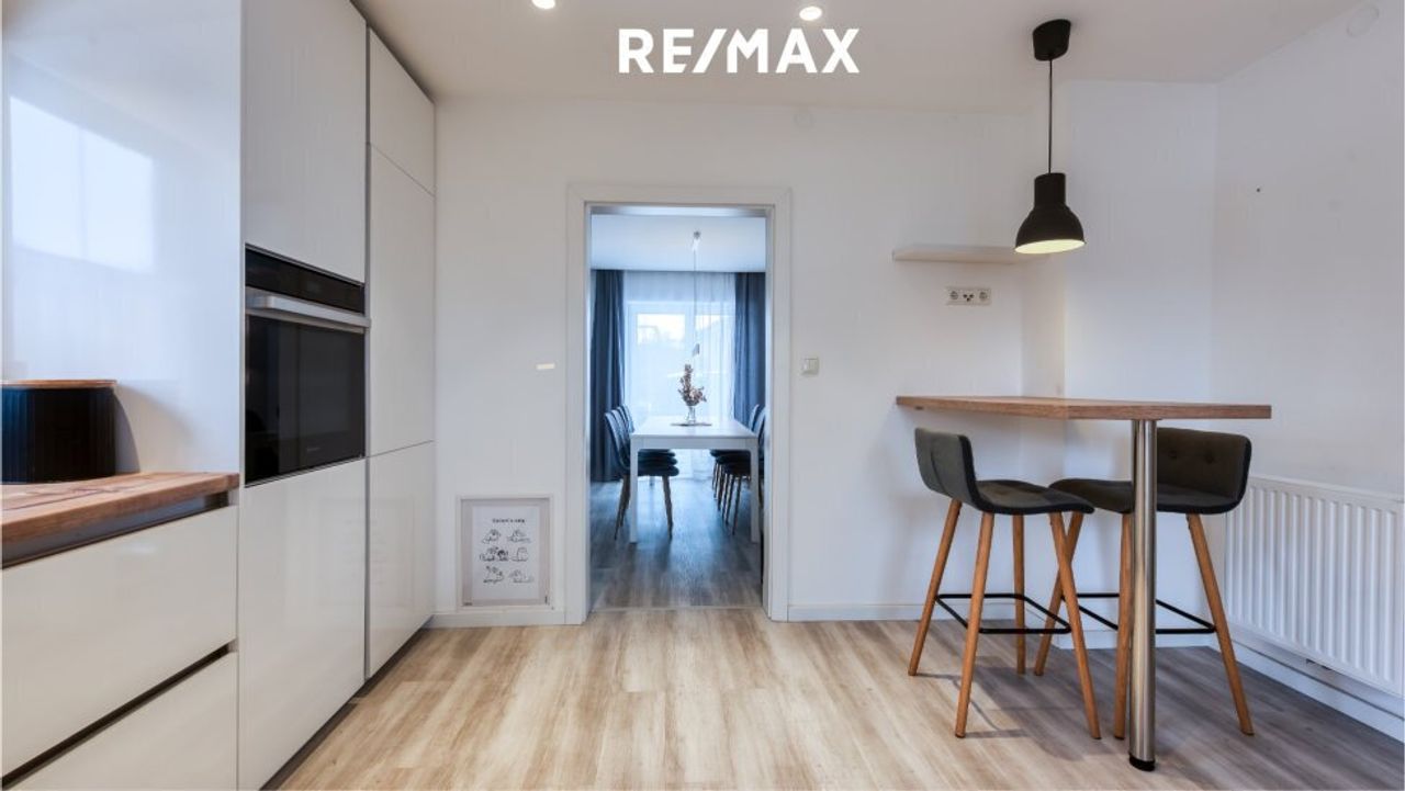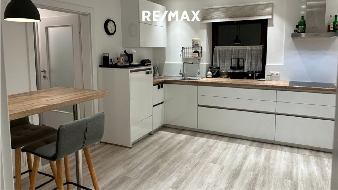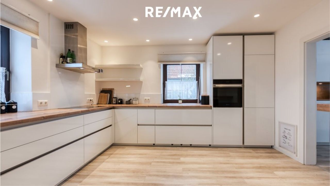 Die Ausstattung lässt keine Wünsche offen: Die moderne Einbauküche ist nicht nur geräumig und funktional, sondern auch ein einladender Treffpunkt für gesellige Kochabende mit Freunden und Familie.
