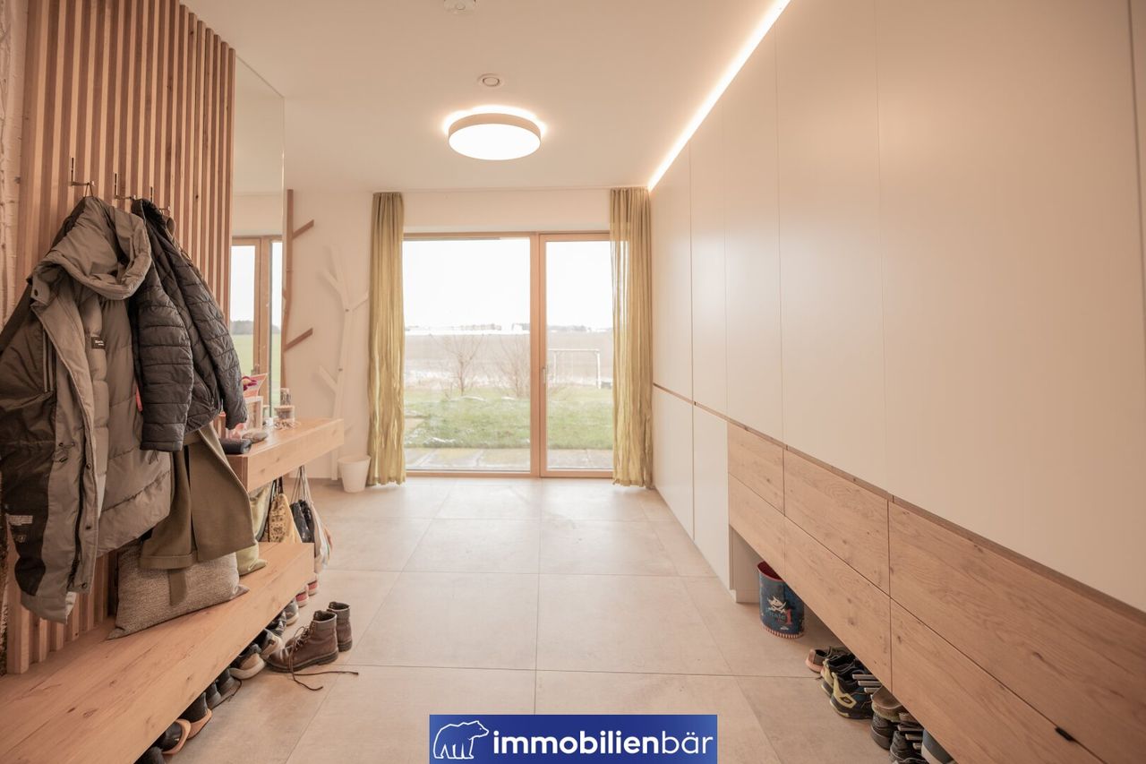 Am Ende einer ruhigen Sackgasse, wo nur Vogelgezwitscher den Tag begrüßt, liegt dieses moderne Einfamilienhaus in Puchberg. 2019 von der renommierten Baufirma Gerstl errichtet, vereint es klare Architektur, intelligente Haustechnik und wohnliche Atmosphäre – ideal für alle, die Ruhe suchen, aber die Nähe zur Stadt Wels schätzen. Mit rund 255 m² Wohnfläche, einem 1.040 m² großen Baugrund und zusätzlich 2.413 m² Grünland bietet die Liegenschaft Raum für Familie, Freizeit und Zukunftsideen.