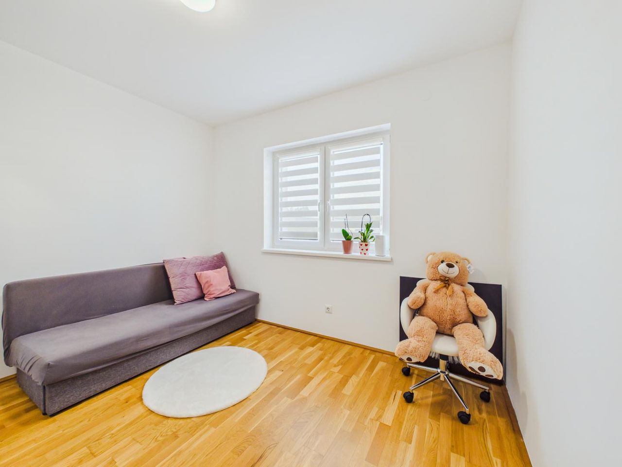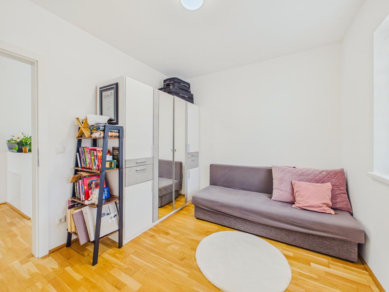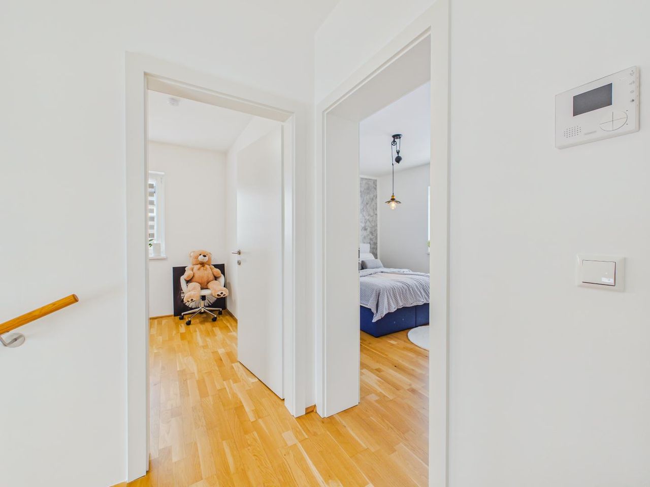 Die durchdachte Aufteilung schafft eine klare Trennung zwischen Wohnbereich und privaten Rückzugsräumen – ideal für Familien oder Paare mit Platzbedarf.