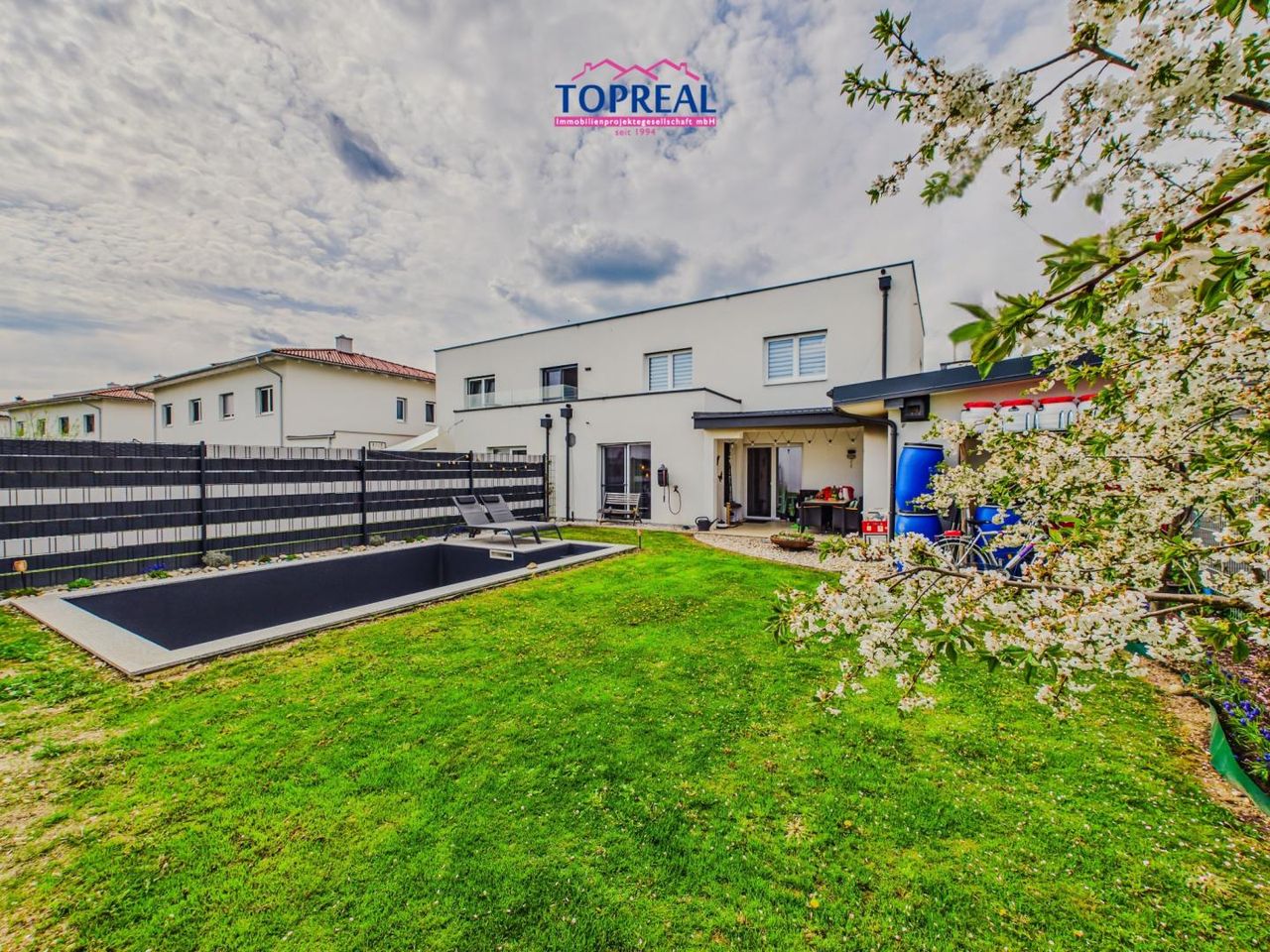 Errichtet im Jahr 2018 in Massivbauweise, präsentiert sich die Immobilie in einem nahezu neuwertigen Zustand und überzeugt mit durchdachter Raumaufteilung, lichtdurchfluteten Wohnräumen und einem großzügigen Eigengarten inklusive Pool.