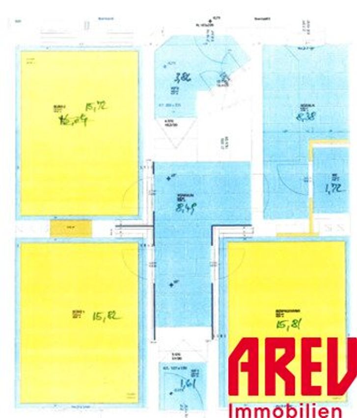 - Erdgeschoss (ca. 71 m²): Ein einladender Vorraum führt in drei helle Räume, ein WC sowie eine Kaffeeküche ist vorhanden.