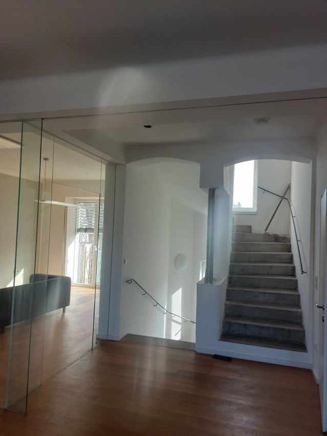 - Obergeschoss (ca. 65 m²): Hier beeindruckt ein großzügiges Loft-Ambiente (ehem. Großraumbüro) sowie ein weiteres Zimmer. Das ehemalige Archiv ist bereits für den Ausbau zum Badezimmer vorbereitet.