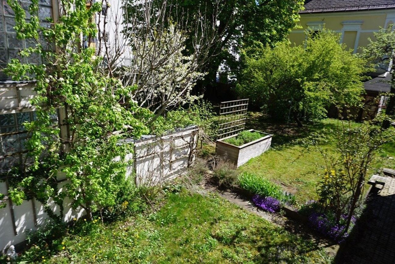 - Grüne Oase: Ein gepflegter Hausgarten mit Ziersträuchern und altem Baumbestand bietet Rückzug mitten in der Stadt.