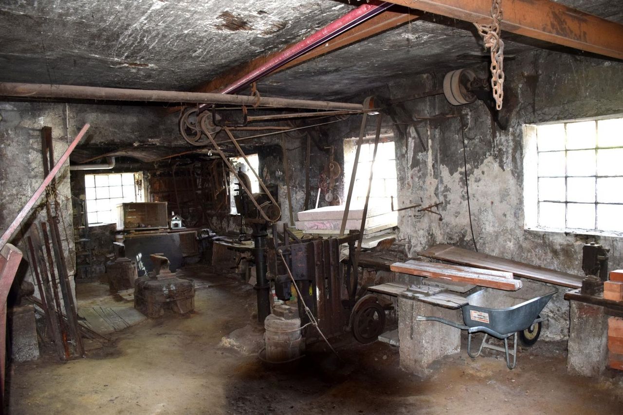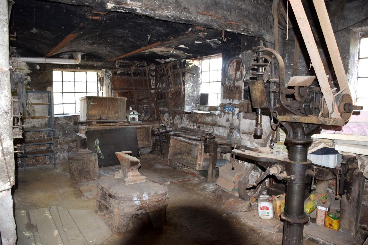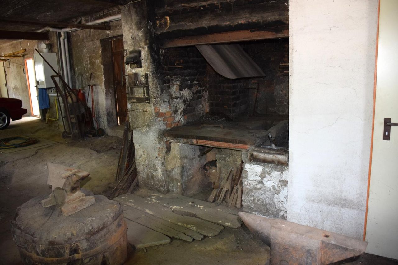Im Erdgeschoß befinden sich ein Garagenabstellplatz sowie eine Schmiede (ca. 100m²)aus dem Errichtungsjahr, die bis zum Schluß noch in Verwendung war.