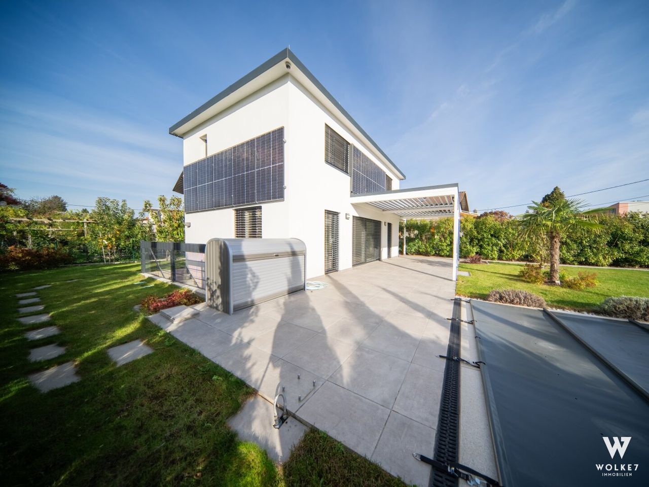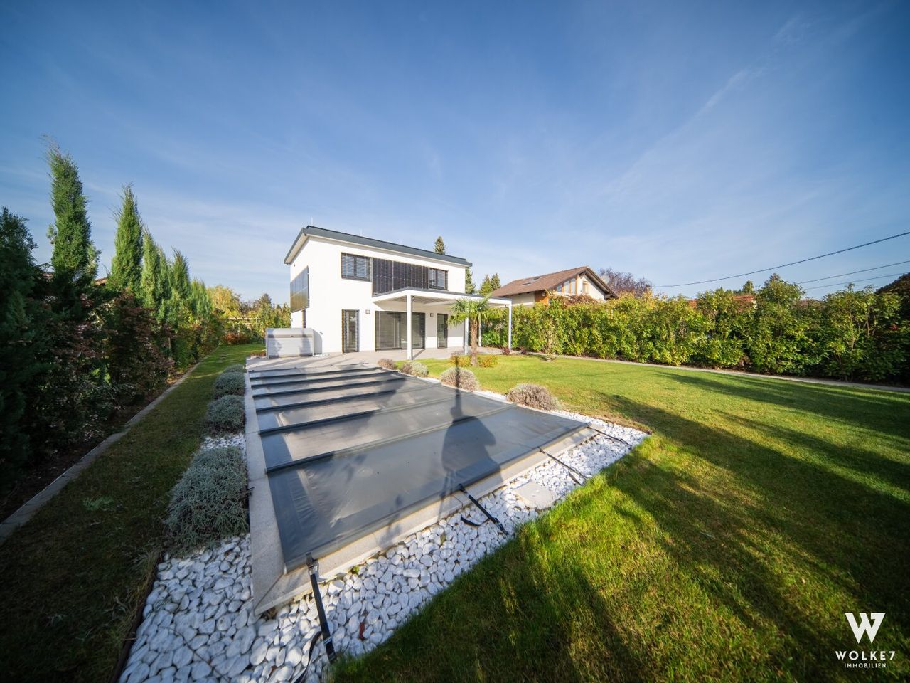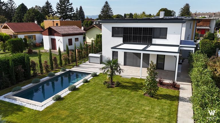 Dieses luxuriöse Einfamilienhaus in erstklassiger Lage besticht durch seine moderne Technik, die nachhaltige Energieversorgung und die perfekte Verarbeitung bis ins kleinste Detail. Der gepflegte Garten samt Pool und überdachter Terrasse, sowie die Kellerausstattung runden das außergewöhnliche Angebot ab. Mit einem letzten Feinschliff – der Einbau Ihrer Traumküche – sind Sie bereit, sofort einzuziehen und Ihr neues Leben zu beginnen.