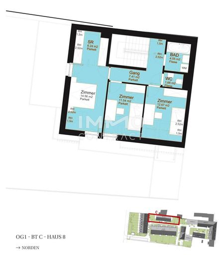 - Wohnungsgrößen von ca. 47 m² bis rund 122 m² auf 2- bis 4-Zimmern