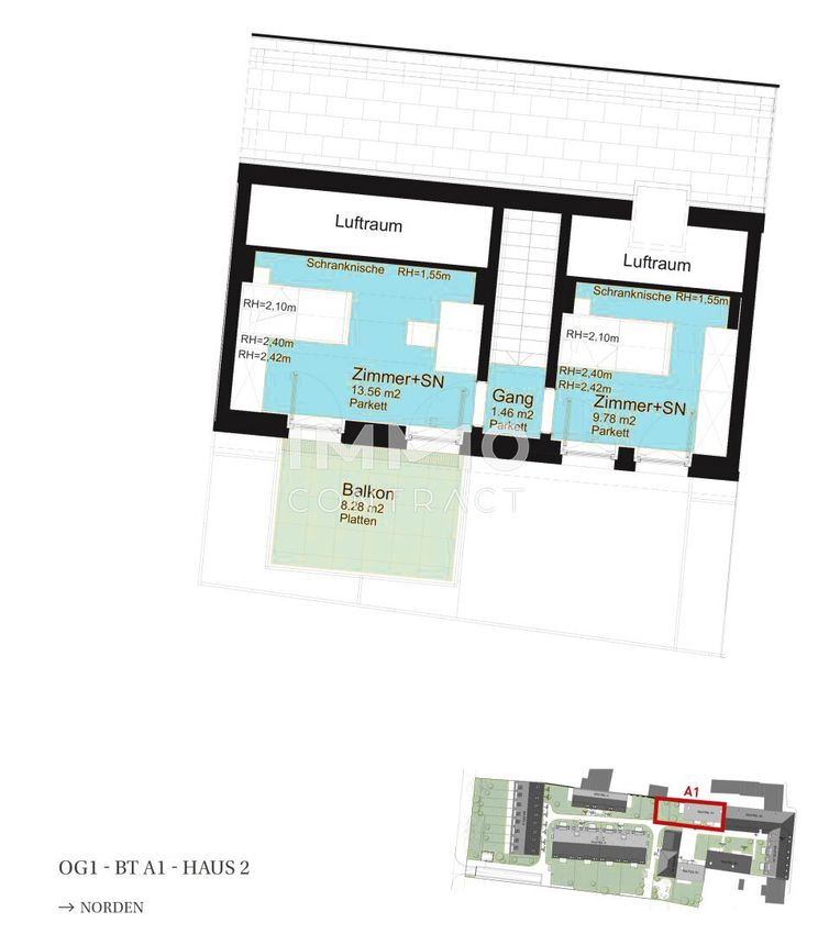 Alle Einheiten werden schlüsselfertig übergeben, inklusive hochwertiger Sanitäranlagen, Fliesen und Eichen-Parkettböden. Der Erwerb erfolgt provisionsfrei.