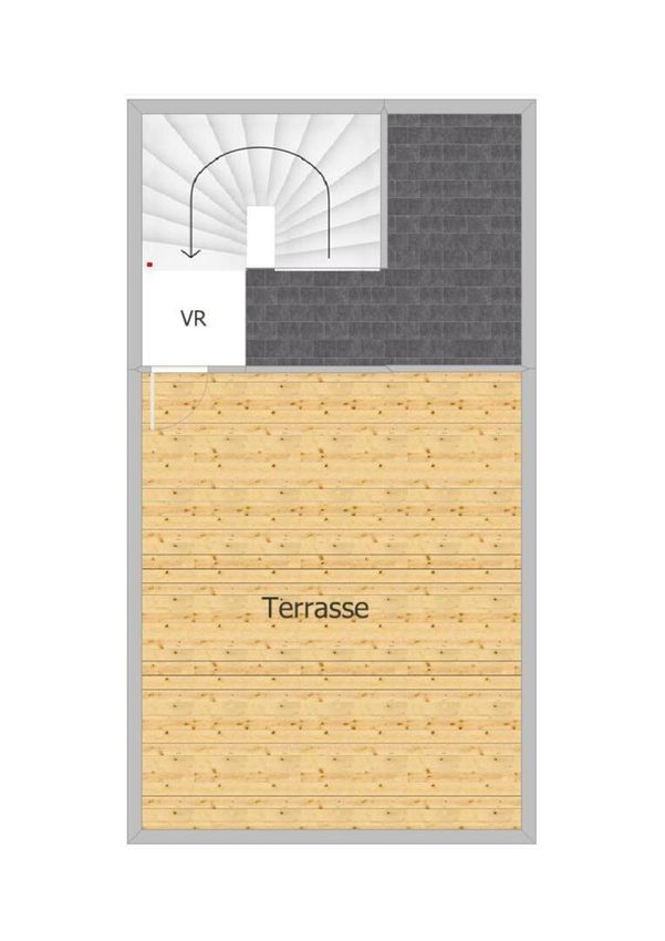 - Bodenbeläge: Feinsteinzeug in den Nassräumen, Parkettböden in den Wohnräumen, Holzbelag auf der Terrasse