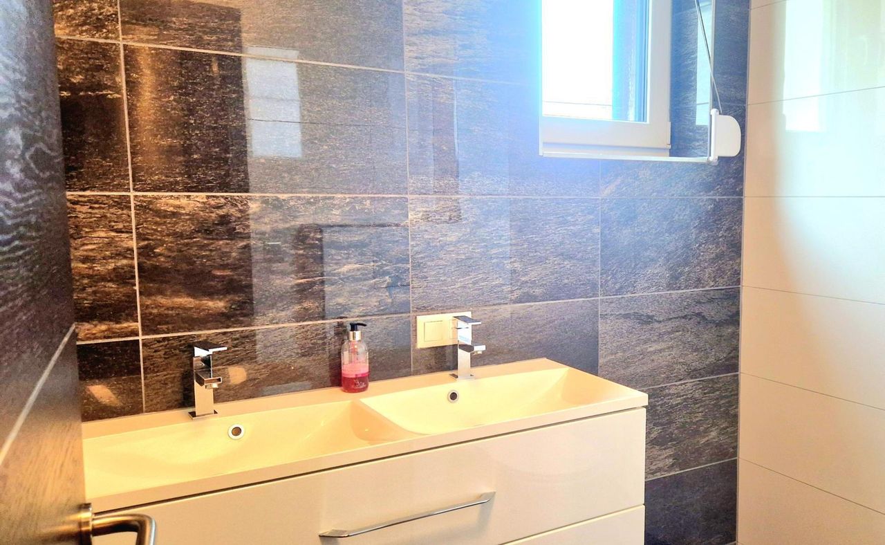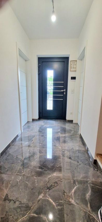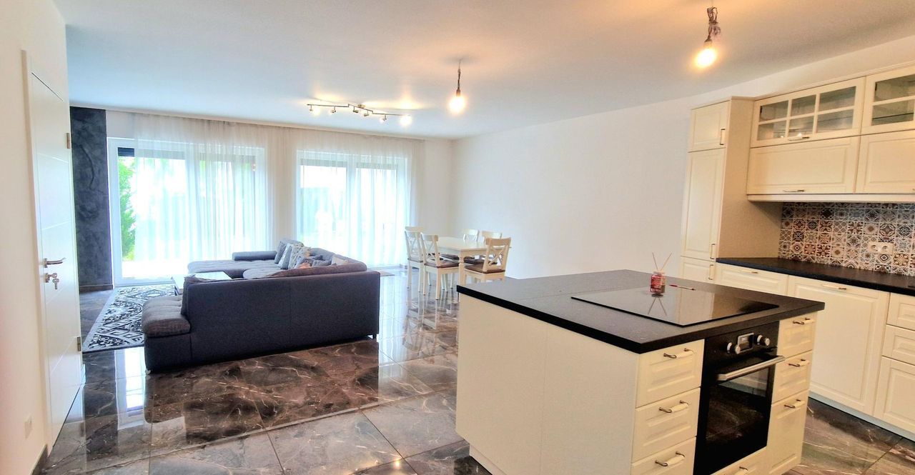 Neuwertiges Reihenhaus an der Wiener Stadtgrenze. Modernes, neuwertiges Reihenmittelhaus, mit hochwertiger Ausstattung, ohne Keller, mit Parkplatz auf Eigengrund. Neueste Technik, wie Luftwärmepumpe, Fußbodenheizung, großzügige Raumaufteilung, …. Aufteilung – Zugang nordseitig über den Parkplatz/mit elektrischem Tor, Eingangsbereich mit Garderobe, Technikraum und 1. WC. Weiter in den sehr hellen Wohnbereich, sehr große Terrassenfenster/türen, voll südseitig mit neuer, heller Landhausküche mit Kochinsel und keramischen Hochglanzfußböden/Fliesen auf der ganzen Etage. --------------------------- Ausgang auf die südseitige Terrasse und in den Garten. --------------------------- Stiegenaufgang mit Massivholzbelag in Eiche. --------------------------- 1. Etage mit 3 weiteren geräumigen Zimmern mit Parkettböden, Bad mit 2. Toilette, Dusche, Doppelwaschtisch, … ----------------------------...