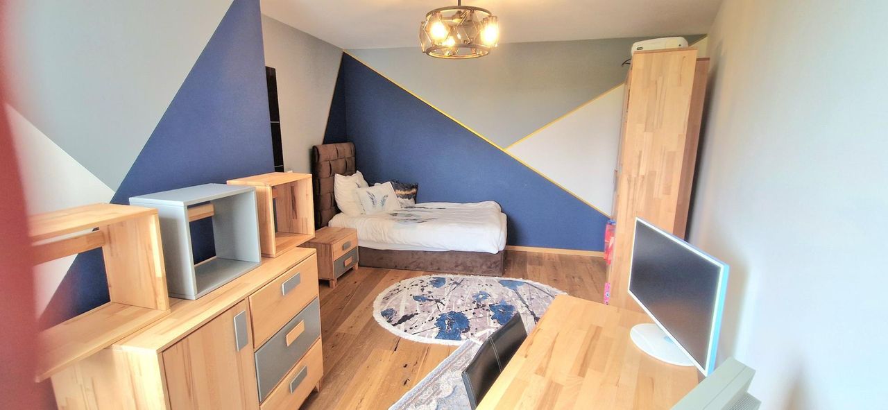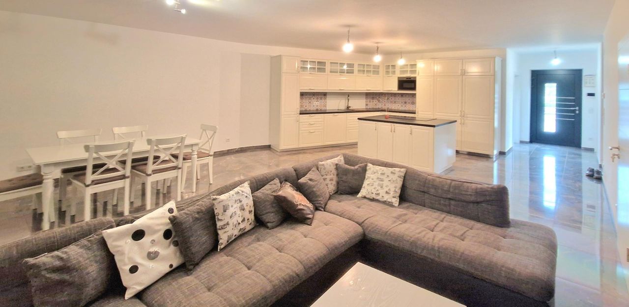 1-2 Parkplätze, 5 Zimmer, 2 Wc´s, 1 Bad, Küche, Luft/Wärmepumpe, Fußbodenheizung, 3fach Verglasung, Aussenrollos bei allen Fenstern, Hochglanzlandhausküche, 3x Freiflächen – 1 Terrasse Garten, 2x Dachterrassen / ges. ca. 45 m²