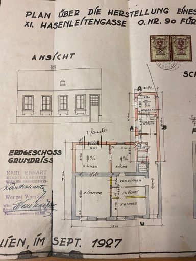 Zum Verkauf gelangt ein Einfamilienhaus in der Hasenleitengasse, 1110 Wien, errichtet 1927 (laut Plan), in Ziegelmassivbauweise.