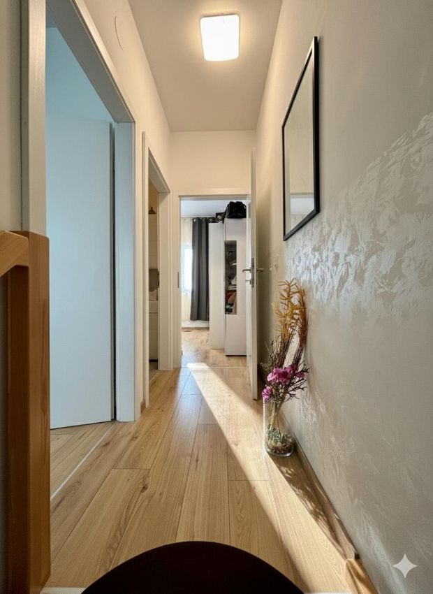 Für ein angenehmes Wohngefühl sorgen Parkettböden im Erdgeschoss, Laminat im Obergeschoss sowie moderne Fliesen in den Nassräumen, die den Räumen ein zeitloses Ambiente verleihen.