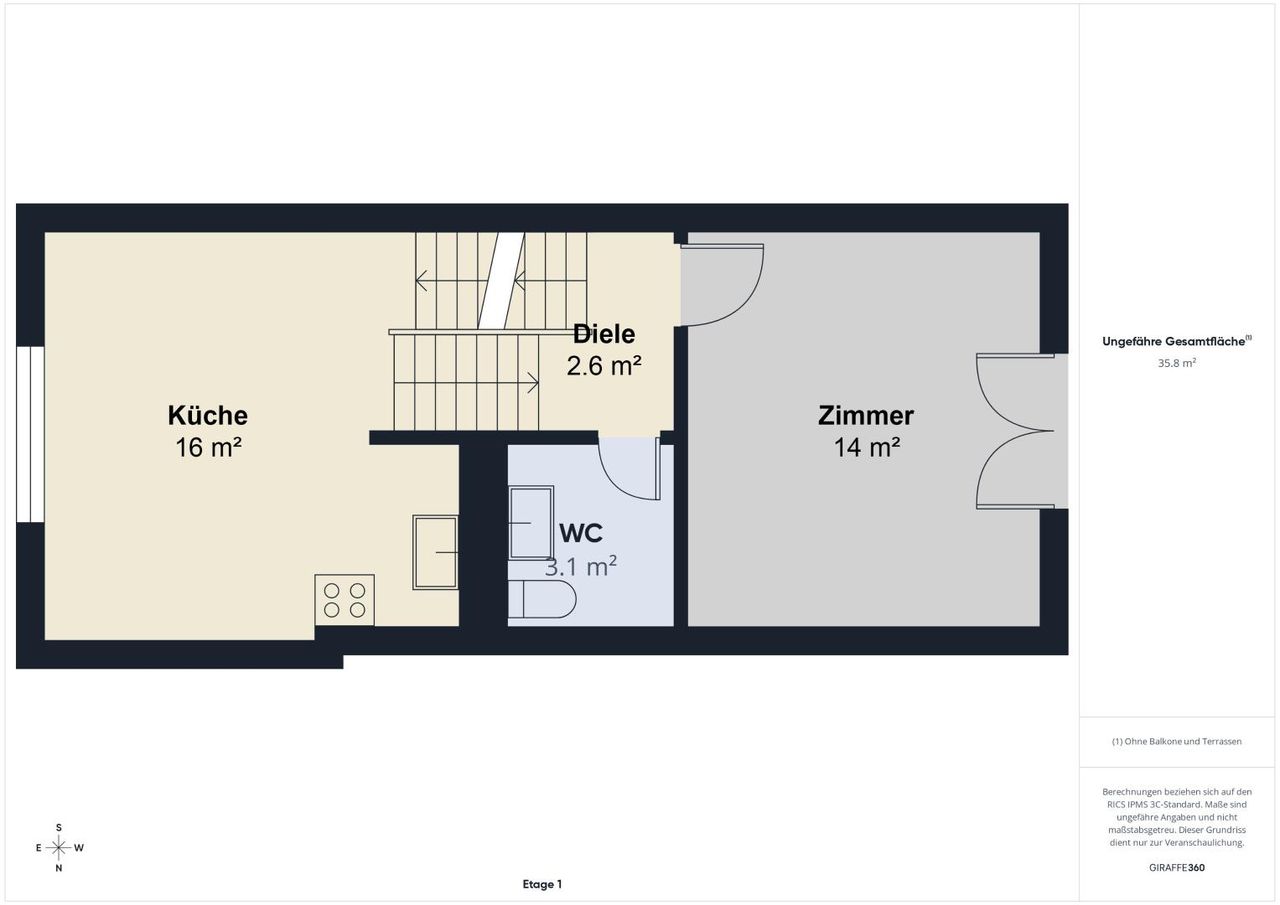 3 m² Bad & WC
